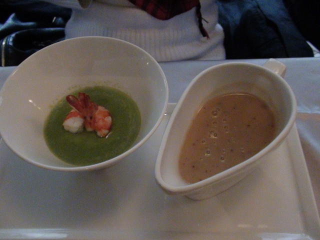 我看老師把濃湯加到旁邊的蔬菜蒸蛋裡一起喝